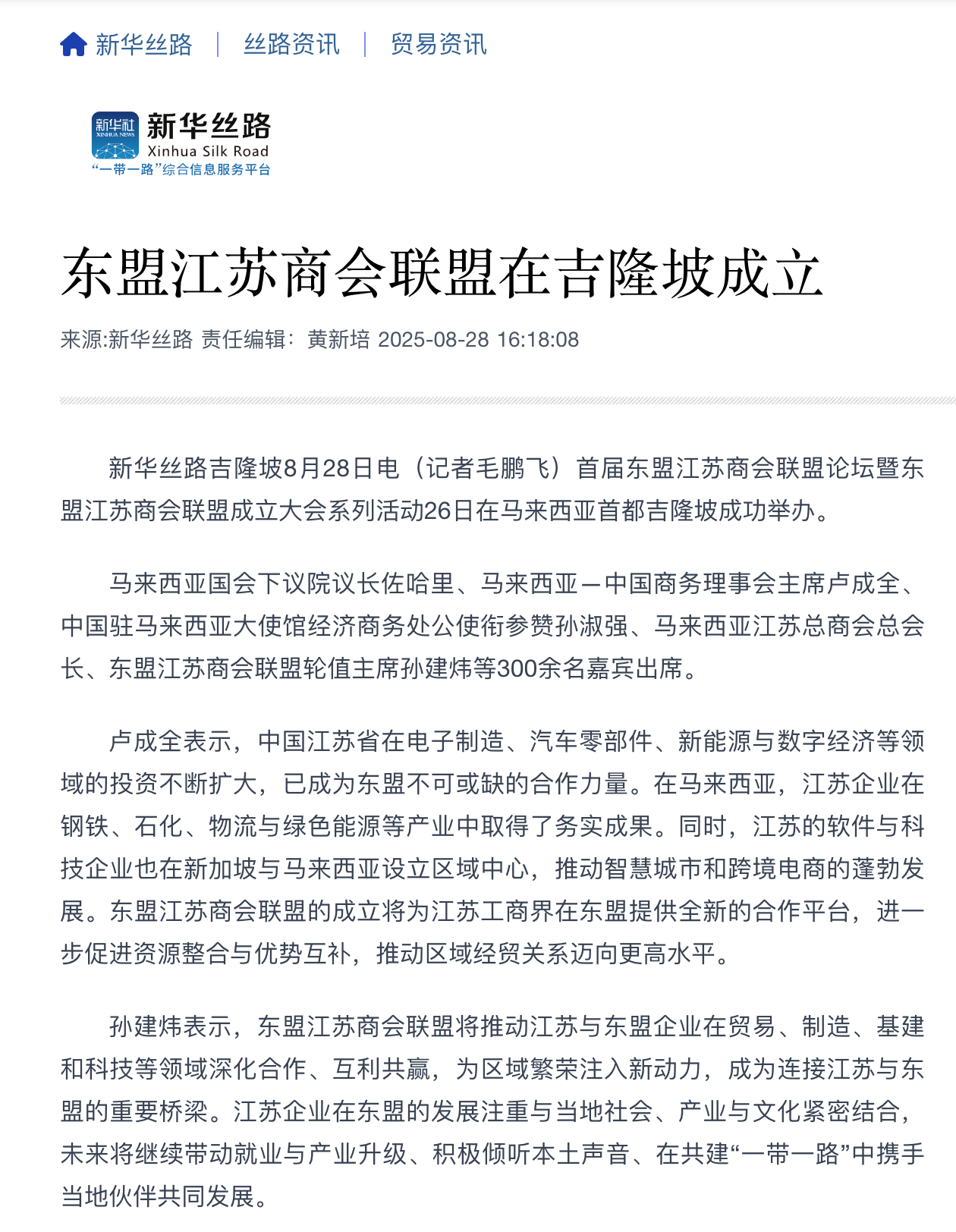 新华丝路 | 东盟江苏商会联盟在吉隆坡成立